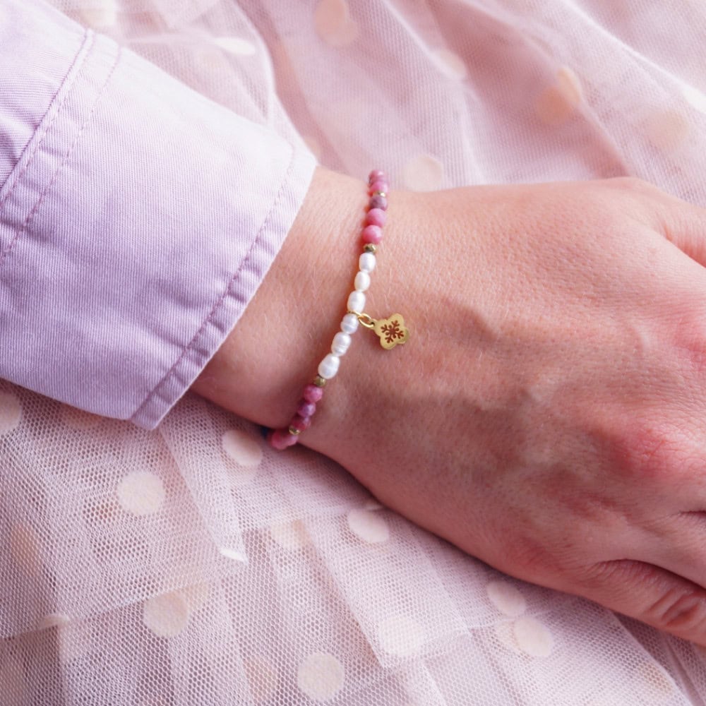 Empatia, delikatność, towarzyszenie, wrażliwość na piękno i czułość na potrzeby innych to atrybuty kobiecości. To również duża część mojej pracy. Dużo rozmawiam, korzystam z kobiecej intuicji, żeby doradzić moim klientkom i klientom. Czasem spotykam się z pytaniem, co kupić na prezent młodej osobie, która dopiero oswaja się z noszeniem “dorosłej” biżuterii? Lubi jasne kolory, ma w sobie dużo wdzięku i romantyczne usposobienie. Myślę, że bransoletka KOBIECOŚĆ będzie dobrym wyborem.