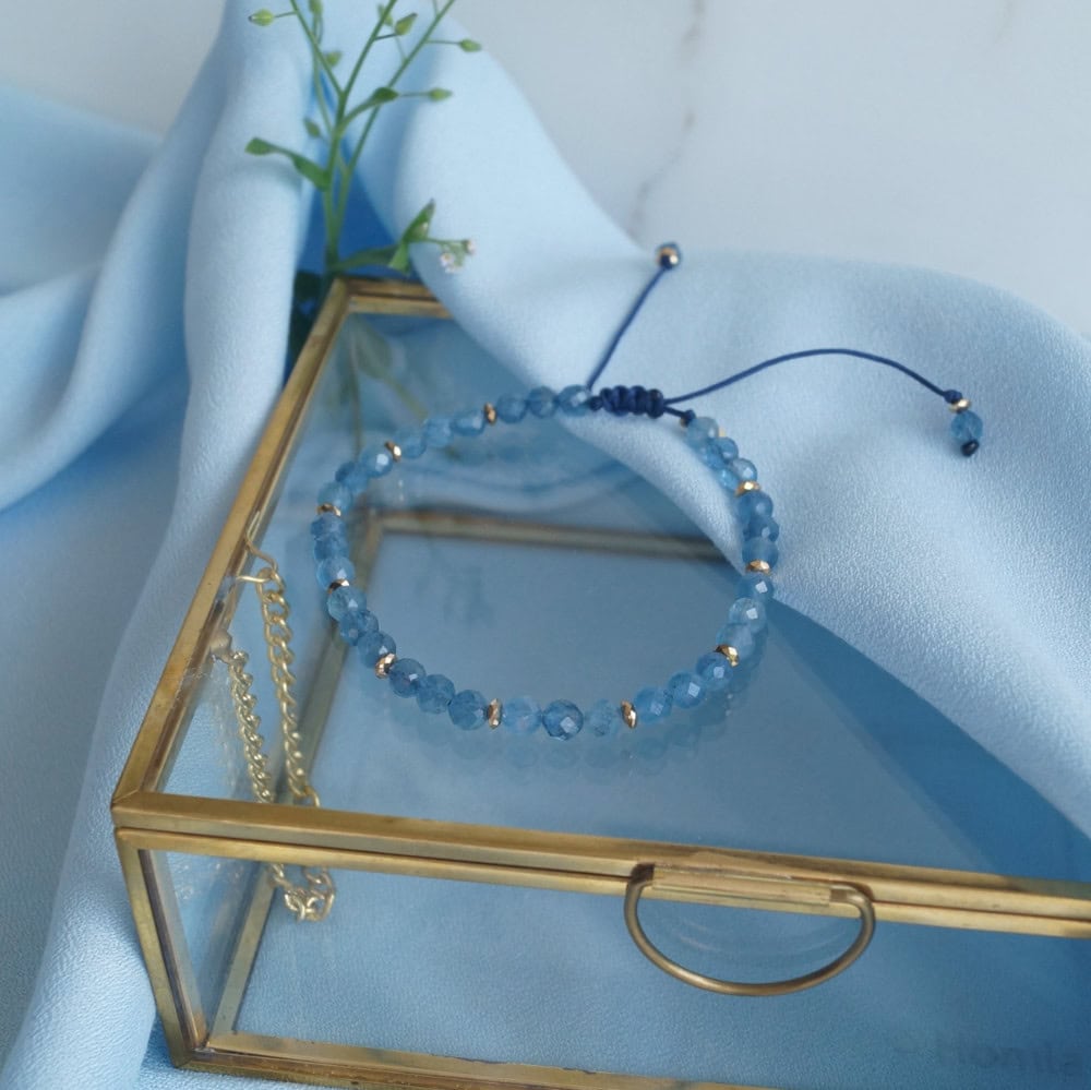 Subtelna i pełna lekkości, bransoletka ZAUFANIE została stworzona z naturalnych kamieni akwamarynu – minerału harmonii, odwagi i szczerej komunikacji.