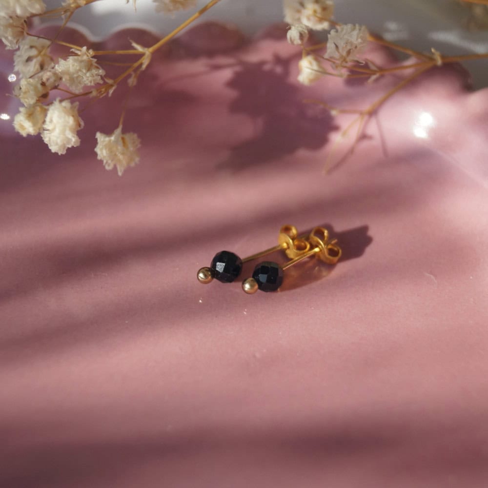 Kolczyki z czarnym turmalinem, minimalistyczne kolczyki z wygodnym zapięciem. Sprawdzą się na prezent dla Fanki małych kolczyków i minimalistycznych ozdób.