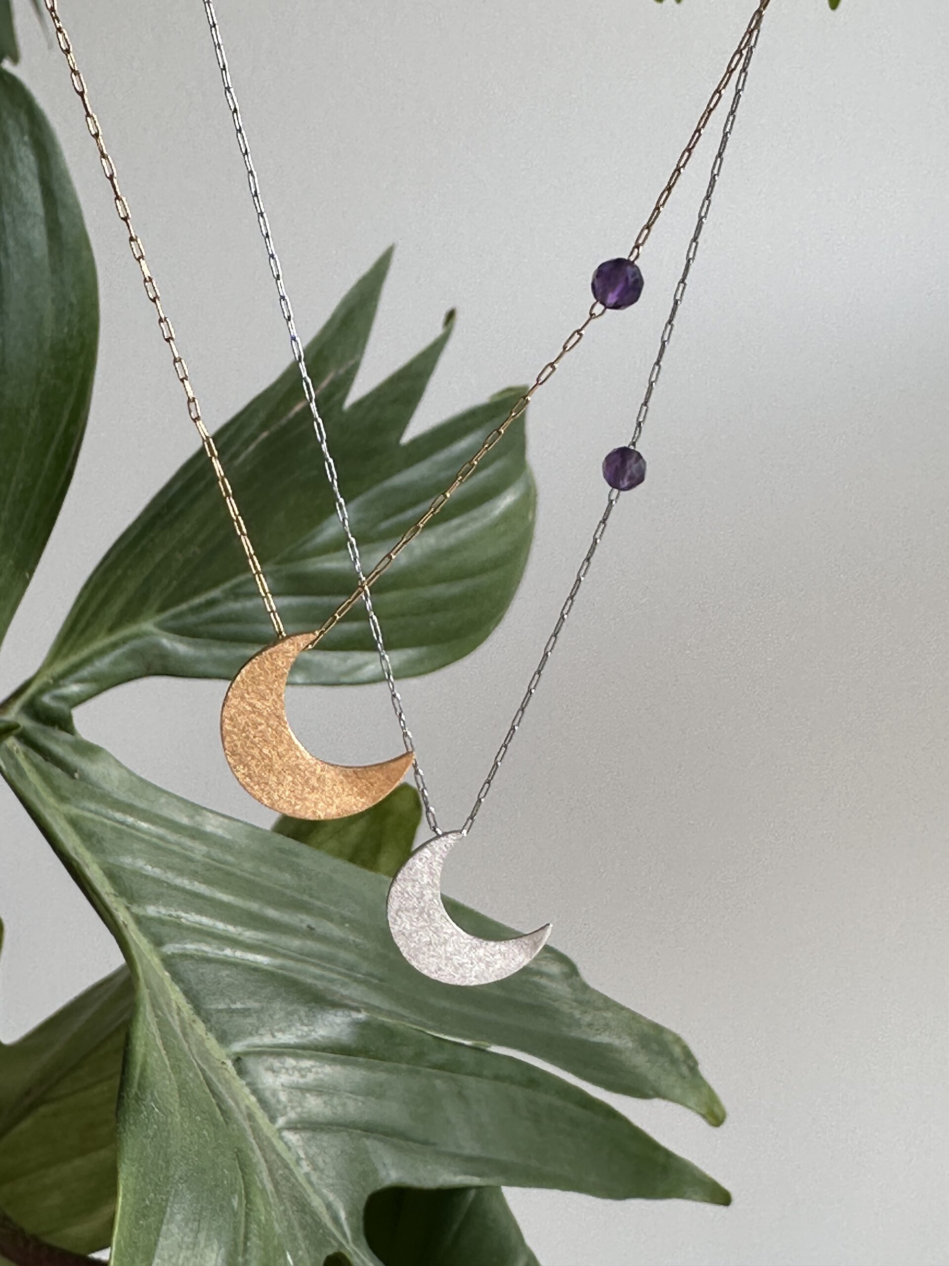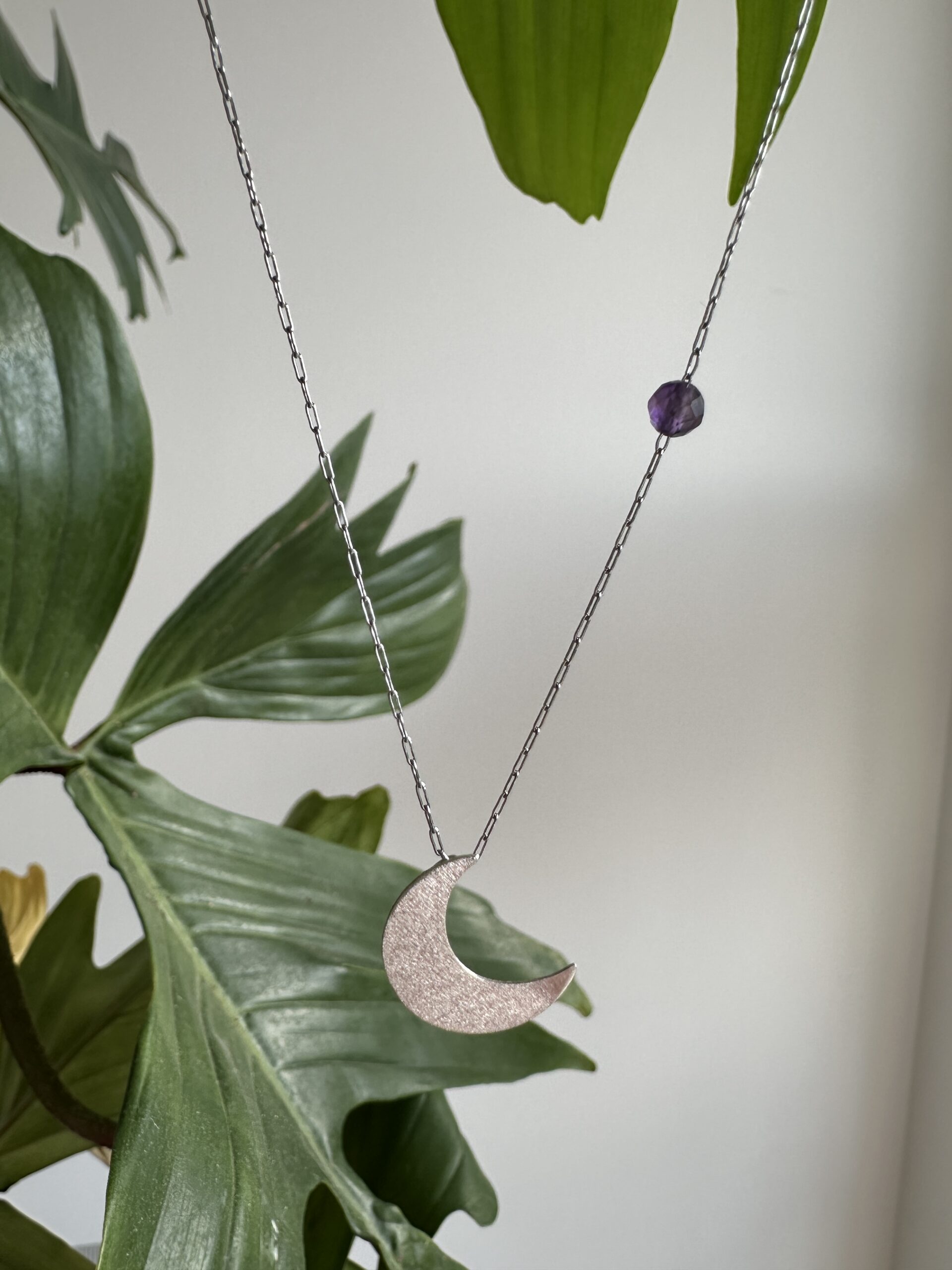 Delikatny łańcuszek Luna z księżycem i ametystem tworzą subtelny symbol spokoju, który chcesz mieć blisko siebie.