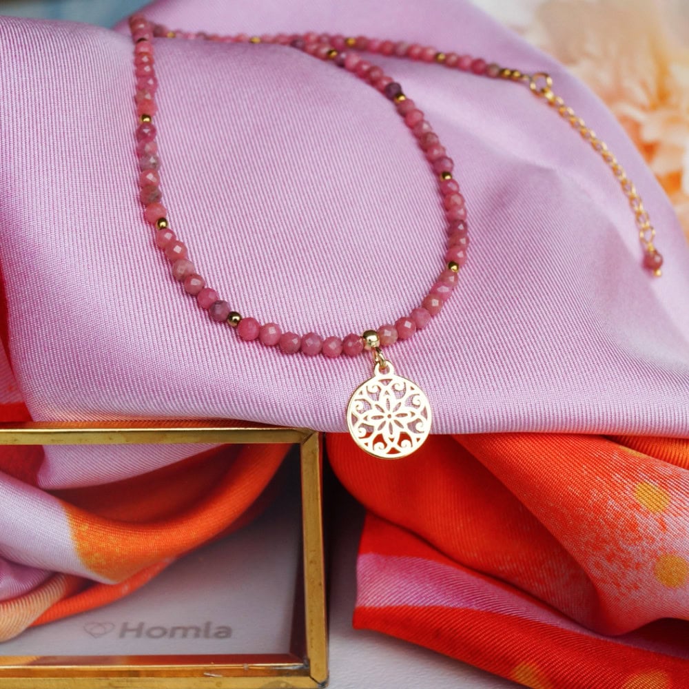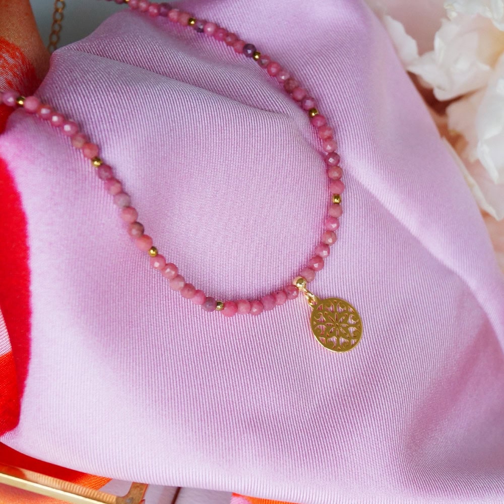 Jest coś, co skłania mnie do działania. To dzięki niemu tworzę nowe produkty, nowe kolekcje biżuterii dla kobiet. To dzięki niemu każdy dzień jest inny, a praca nie nuży. NATCHNIENIE. Nazwałam ten naszyjnik NATCHNIENIE, bo bladoróżowe rodonity są subtelne, a jednocześnie pełne energii. Dodałam delikatną, złotą zawieszkę – rozetę. To połączenie rozświetla twarz, a cera promienieje.