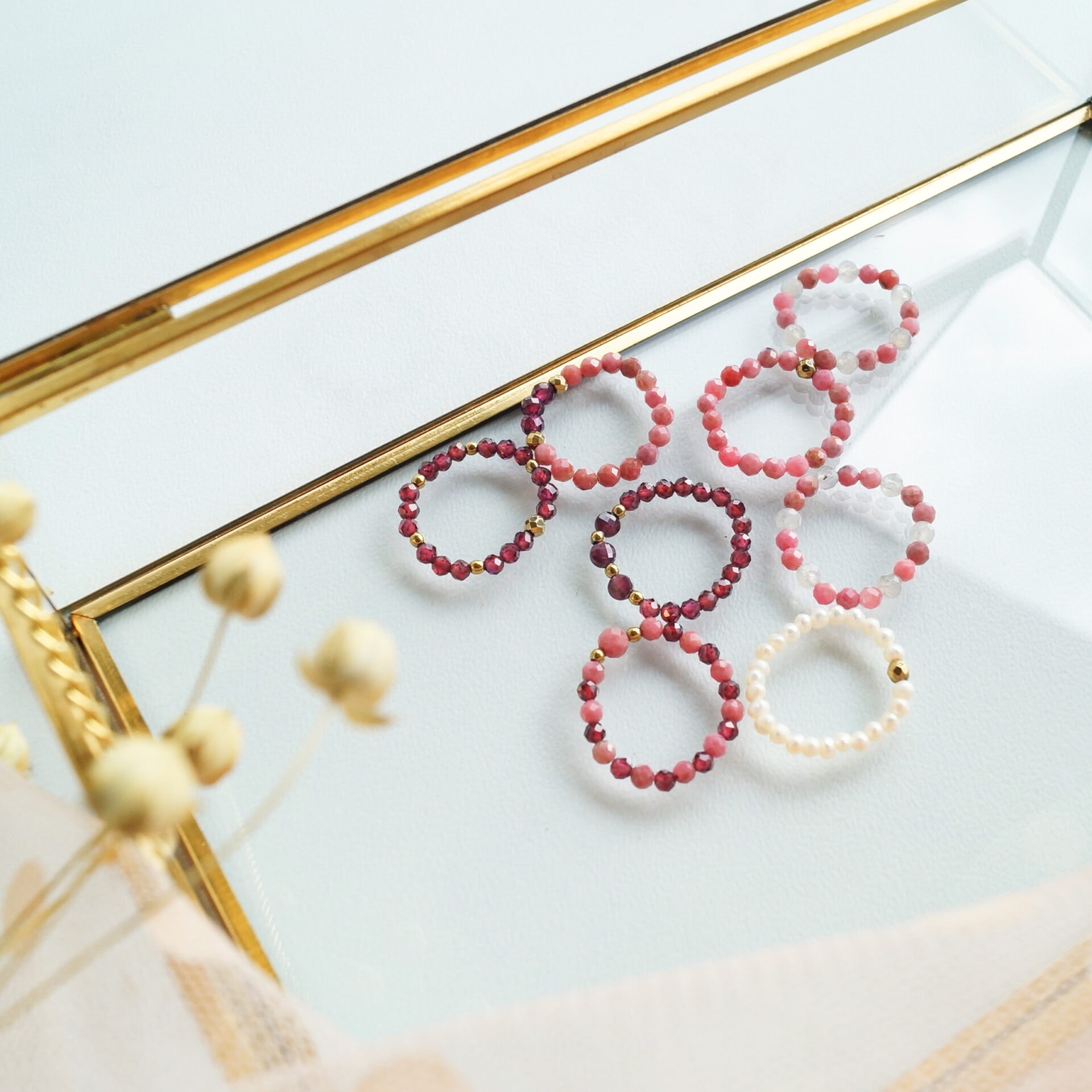 Pierścionek ENERGIA to moc koloru purpury w kryształach granatu. Intensywna czerwień granatu uwalnia się podczas ruchu i migocze na szlifowanych krawędziach. Złoto hematytów rozjaśnia całość. Kamienie, mimo że są maleńkie, emanują energią. Spróbuj ponosić ten pierścionek, gdy czujesz, że brak Ci zapału i pasji w tym, co robisz. Myślę, że pozytywnie wpłynie na Twój nastrój.