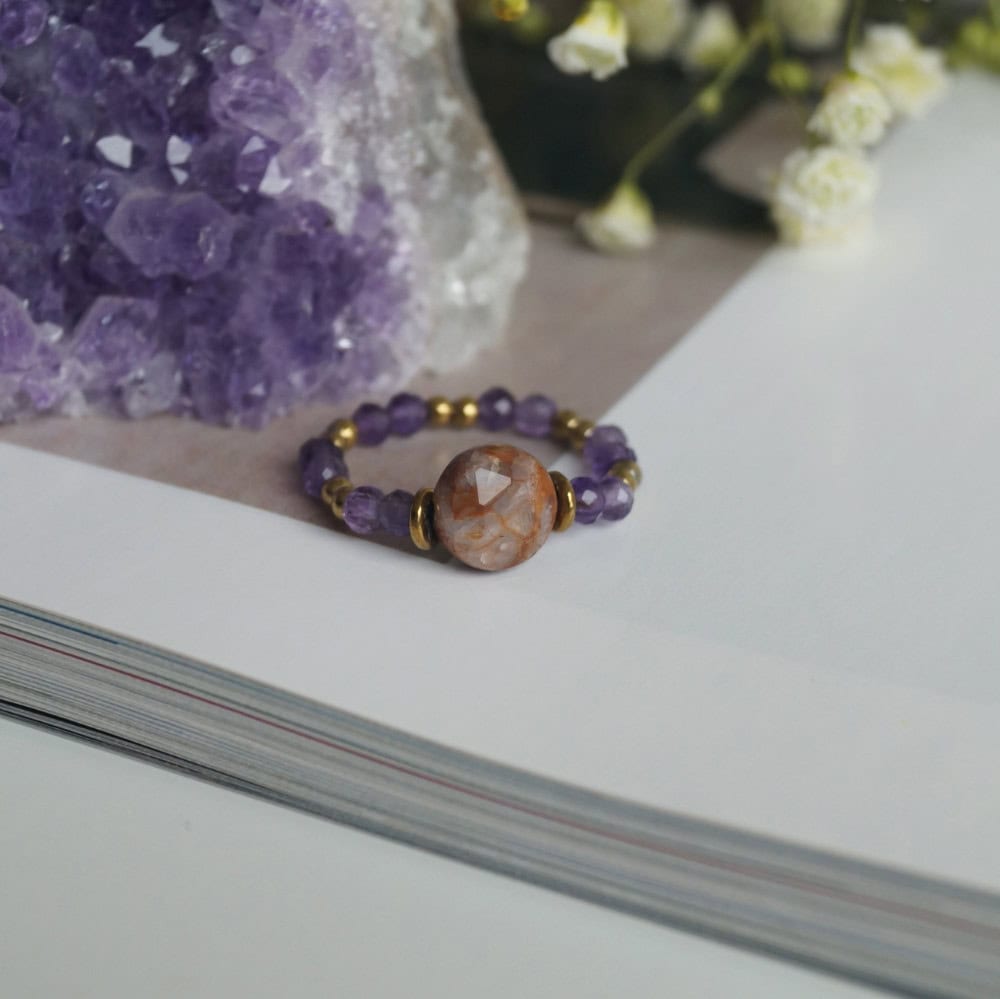 Pierścionek Światło z kolekcji MIRA to delikatność zamknięta w prostej formie. Wykonany z mlecznofioletowego ametystu achivon, subtelnie odbija światło i przywodzi na myśl poranny spokój. To biżuteria, która przypomina o uważności i wdzięczności — o tym, że każda chwila może być początkiem czegoś dobrego.