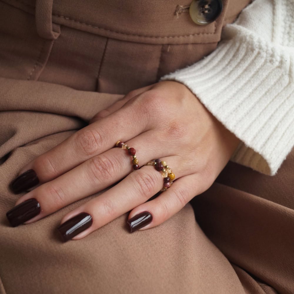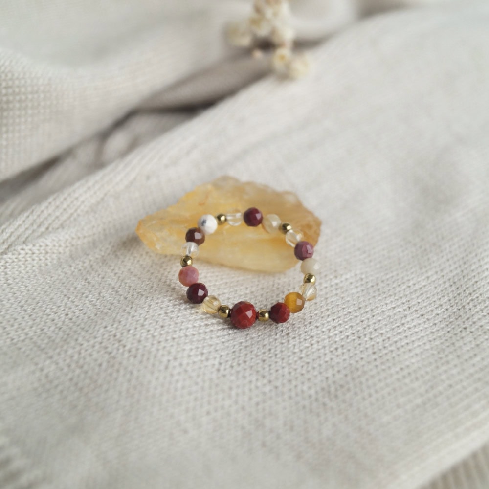 Pierścionek na gumce z mokaitu i cytrynu to unikalne połączenie dwóch kamieni o różnorodnych barwach i właściwościach. Ten pierścionek łączy w sobie moc ziemi i słońca, dodając subtelnej elegancji i energetycznego akcentu każdej stylizacji!